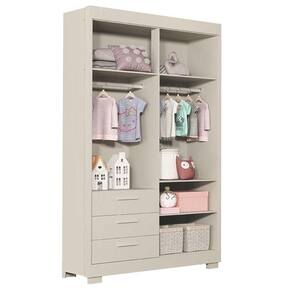 Guarda Roupa Infantil Zaki 4 Portas e 3 Gavetas Areia Acetinado - Reller