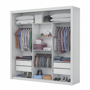 Contando com um design que combina facilmente com todos os estilos de decorações, o Guarda Roupa Isabela Luxo garante beleza ao seu quarto e um amplo espaço interno para a organização dos seus objetos, sapatos e roupas. Para deixar o seu quarto com um visual ainda mais sofisticado, ele possui três portas de correr sendo uma delas com quatro espelhos que além de serem funcionais, trazem a sensação de amplitude, principalmente em ambientes menores.