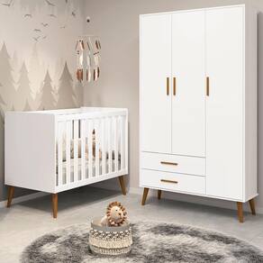Apresentamos o Guarda Roupa Isis 3 Portas 2 Gavetas, fabricado pela Reller Móveis Infantis. Ele possui um encantador toque retrô com pés em madeira que adicionam um design refinado e elegante ao quarto do seu bebê. Apresenta 3 portas para armazenamento, 2 gavetas para organizar roupas e um cabideiro metálico. Além disso, inclui um sistema antitombamento para garantir a segurança do seu pequeno. Com um design que combina funcionalidade e estilo, este roupeiro é perfeito para criar um ambiente aconchegante no quarto da sua criança.