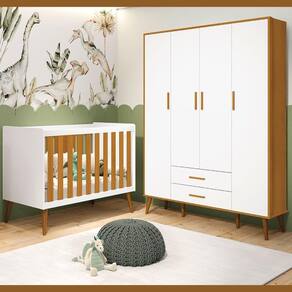 Apresentamos o Guarda Roupa Isis 4 Portas 2 Gavetas, fabricado pela Reller Móveis Infantis. Ele possui um encantador toque retrô com pés em madeira que adicionam um design refinado e elegante ao quarto do seu bebê. Apresenta 4 portas para armazenamento, 2 gavetas para organizar roupas e um cabideiro metálico. Além disso, inclui um sistema antitombamento para garantir a segurança do seu pequeno. Com um design que combina funcionalidade e estilo, este roupeiro é perfeito para criar um ambiente aconchegante no quarto da sua criança.