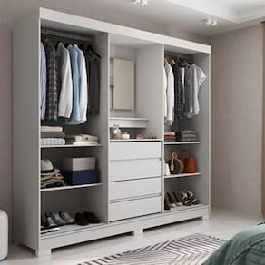 Guarda-Roupa Casal MP-WL12 com Espelho Central Organização Inteligente com Toque de Sofisticação