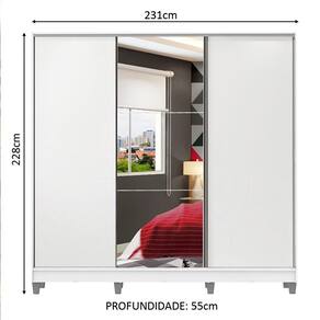 Medidas totais do armário: 228 cm de altura x 231 cm de largura x 55 cm de profundidade.