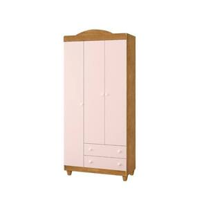 Guarda Roupa Lara 3 Portas E 2 Gavetas Em Mdf Nature / Rose - Rosa