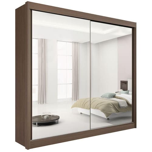 - Portas: Sim, 2, de correr, com espelhos, possui sistema de guia folga zero, roldanas com mola e puxadores em alumínio;