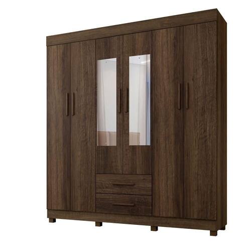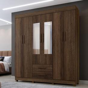 Guarda Roupa Leblon 6 Portas 2 Gavetas 7 Prateleiras Imbuia O Guarda-Roupa Leblon e produzido em chapa de 15 mm que garante robustez e maior vida util , contem 6 portas, 7 prateleiras, 2 gavetas com corredicas telescopica, cabideiro em aluminio, espaco para longos, pes incluso no produto e puxadores modernos , alem de ter espelho nas portas centrais otimo custo beneficio. Sua fabricacao utiliza a linha mdp perffect, que une a sustentabilidade a inovacao tecnologica, proporcionando durabilidade e facil limpeza; inspirando sofisticacao ao mobiliario. Sua pintura UV conta com boa resistencia, e facil de limpar e e ecologicamente correto, pois utiliza madeira de reflorestamento, evitando o desmatamento. Caracteristicas: Material principal: MDP Espessura da chapa: 15 mm Escala de brilho: semibrilho Sistema de montagem: parafuso, cavilha e cantoneiras metalicas Quantidade de Portas: 06 Quantidade de Prateleiras: 07 Quantidade de Gavetas: 02