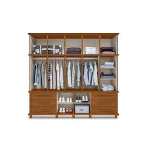 Guarda Roupa Londres Triplex Grande 5 Portas 6 Gavetas com Maleiro Carvalho New Luapa Móveis