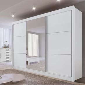 - Portas: Sim, 3, de correr, com um espelho, possui sistema de guia folga zero, roldanas com mola e puxadores em alumínio;
