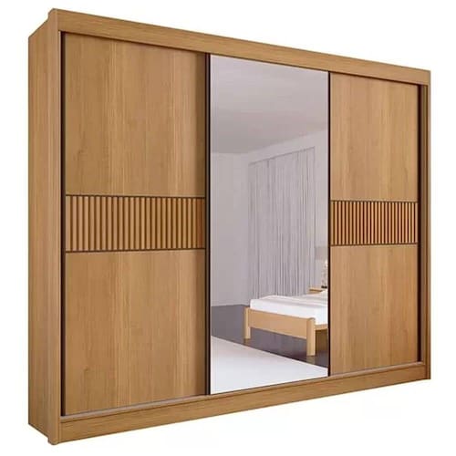 Guarda Roupa Los Angeles Ripado Casal 3 Portas 6 Gavetas D Doro Cor Cinamomo - Marrom