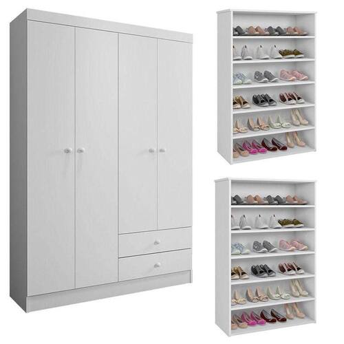 Guarda Roupa Louise com 02 Sapateiras Laís Branco Brilho - AJL