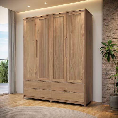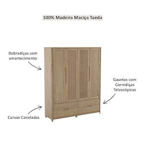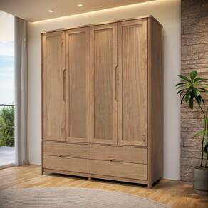 Características: Estrutura em Madeira Maciça de Pinus Taeda de Reflorestamento Pintura semi-brilho 04 Portas com dobradiças com amortecimento 04 Gavetas com corrediças telescópicas Puxadores cava Curvas caneladas Cabideiros de alumínio Amplo espaço para armazenamento Peso máximo suportado pelas Prateleiras 10kg distribuídos Peso máximo suportado pelas Gavetas 05kg distribuídos