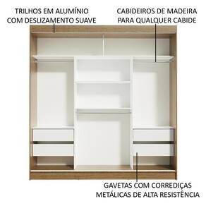 Possui também quatro gavetas espaçosas com corrediças metálicas, dois cabideiros com espaço para roupas longas e um cabideiro para roupas mais curtas.