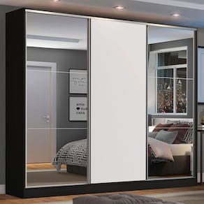Conta com ótima interna, incluindo quatro gavetas espaçosas e com corrediças metálicas. Ideal para utilização no quarto de casal, o móvel possui abertura com três portas de correr com deslizamento suave, que facilitam a circulação no ambiente.