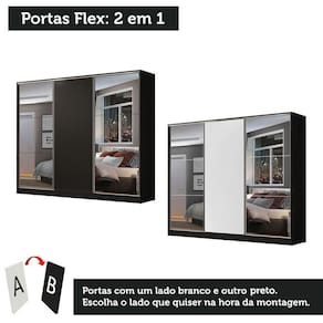 O acabamento externo é preto e o interno é branco. Todas as portas possuem pintura branca em um lado e preta no outro. Assim, cabe a você a escolha no momento da montagem. O processo é feito em Pintura Poliéster de alta resistência que confere maior proteção e durabilidade ao móvel.