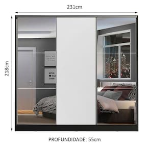 Medidas totais do armário: 218cm de altura x 231cm de largura x 55cm de profundidade.