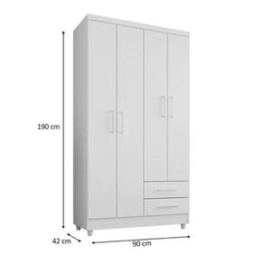 Guarda Roupa Solteiro 90cm 4 Portas e 2 Gavetas Madri cor Branco - Rud RackCom 4 portas e 2 gavetas, suas roupas ficarão organizadas e protegidas. Os cabideiros são ideais para manter suas roupas bem cuidadas e prontas para uso. Além disso, conte com prateleiras para organizar suas peças de maneira eficiente. Aproveite e leve agora mesmo!Diferenciais:- Cor: Branco fosco- 4 Portas- 2 Gavetas com corrediças metálicas- 2 Cabideiros- Pintura U.V- Prateleiras internas- Amplo espaço interno- Fabricação MDF e MDP- Puxadores PVC- Pés PVCDimensões do produtoAltura: 190 cmLargura: 90 cmProfundidade: 42 cmPeso: 51 KgVolume total: 01Produto entregue desmontadoAcompanha manual e todas ferragens necessárias para montagemGarantia: 3 meses contra defeito de fabricaçãoFabricante: Rud Rack