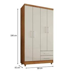 Guarda Roupa Solteiro 90cm 4 Portas e 2 Gavetas - Rud RackCom 4 portas e 2 gavetas, suas roupas ficarão organizadas e protegidas. Os cabideiros são ideais para manter suas roupas bem cuidadas e prontas para uso. Além disso, conte com prateleiras para organizar suas peças de maneira eficiente. Aproveite e leve agora mesmo!Diferenciais:- Cor: Branco fosco- 4 Portas- 2 Gavetas com corrediças metálicas- 2 Cabideiros- Pintura U.V- Prateleiras internas- Amplo espaço interno- Fabricação MDF e MDP- Puxadores PVC- Pés PVCDimensões do produtoAltura: 190 cmLargura: 90 cmProfundidade: 42 cmPeso: 51 KgVolume total: 01Produto entregue desmontadoAcompanha manual e todas ferragens necessárias para montagemGarantia: 3 meses contra defeito de fabricaçãoFabricante: Rud Rack