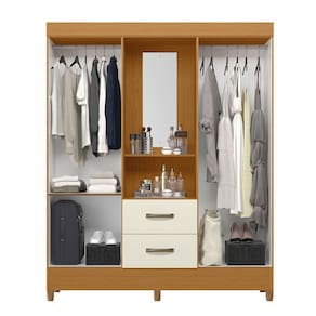 Guarda Roupa Malibu 4 Portas 2 Gavetas Com Espelho Albatroz Cinamomo/off White - Int Bca