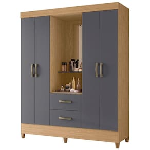 Guarda Roupa Malibu 4 Portas 2 Gavetas Com Espelho Albatroz Freijo/titanium - Int Bca