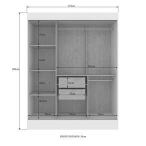 Guarda Roupa Marselha 3 Portas De Correr 2 Gavetas Off White/nogueira - Doripel Guarda-Roupa 3 Portas De Correr 2 Gavetas Doripel MarselhaO Guarda Roupa Marselha da Doripel possui 3 portas de correr, 2 gavetas interna e amplo espaço para separar suas roupas conforme seu gosto. Elaborado em MDP com acabamento UV que confere maior durabilidade ao produto. Suas gavetas possuem corrediças telescópica que garantem uma abertura suave e silenciosa.Recomendações de Uso: Limpar com uma flanela levemente umedecida. Não usar produtos químicos ou abrasivos.Informações Importantes:- A compra do produto não acompanha montagem/desmontagem.- Os objetos que ambientam as imagens, não acompanham o produto.- Atenção: As cores das imagens podem sofrer alterações devido a luminosidade, configurações do monitor e até mesmo a percepção do usuário.Características do produto Modelo Marselha Material MDP Acabamento Pintura UV Tamanho Solteiro Quantidade de portas 3 Quantidade de gavetas 2 Quantidade de prateleiras 3 Quantidade de cabideiros 2 Tipo de porta De Correr Tipo de gaveta Interna Trilho Metálico Corrediças Telescópicas Necessita montagem Sim Complexidade da montagem Média Sistema de montagem Parafusos e Cavilhas Quantidade de volumes 2 Manual de montagem Exibir manual Marca Doripel Conteúdo da embalagem 1 Guarda Roupa, Kit Ferragens, Manual Dimensões aproximadas do produto 200 x 155 x 50 cm (A x L x C) Dimensões aproximadas da embalagem 17 x 56 x 200 cm (A x L x C) Peso aproximado do produto 83 Kg Peso aproximado da embalagem 88,2 Kg Garantia do fornecedor 3 Meses Informações Adicionais Amplo espaço interno