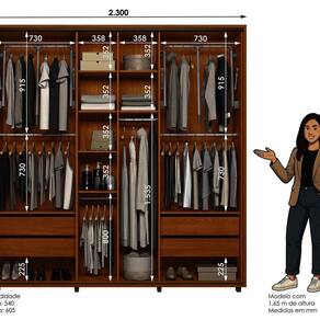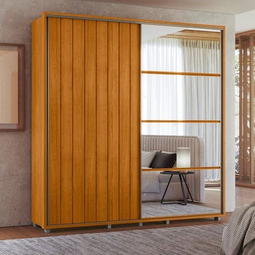 Suas portas de correr com amortecimento garantem um fechamento suave e silencioso, enquanto os cabideiros extensíveis facilitam o acesso às roupas e otimizam o espaço interno.