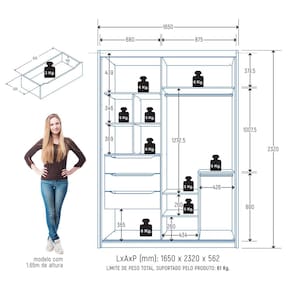 O Guarda-Roupa Splendido MDF combina elegância e funcionalidade, sendo a escolha ideal para quem busca praticidade e design moderno. Fabricado 100% em MDF, ele possui 2 portas com batentes de MDF 2,5cm e painel de MDF 0,9cm, garantindo resistência e durabilidade. Seus puxadores em MDF e as 3 gavetas com frente usinada agregam um toque de sofisticação, enquanto as corrediças telescópicas asseguram um fechamento suave e eficiente. O guarda-roupa também conta com cabideiros e suportes metálicos, proporcionando excelente organização. A moldura lateral em MDF 2,5cm e a estrutura de MDF 1,5cm oferecem robustez e estabilidade, e o acabamento interno igual ao externo garante um visual impecável e harmonioso. Ideal para quem procura qualidade e estilo para o seu espaço. Acabamento da Prateleira: Pintura UV Escala de Brilho da Prateleira: Semi-Fosco Acabamento da Gaveta: Pintura UV Escala de Brilho da Gaveta: Semi-Fosco Possui Organizador de Gaveta: Não Acabamento da Porta: Pintura UV Escala de Brilho da Porta: Semi-Fosco Material do Puxador da Porta: MDF Ambiente Principal: Quarto codigo_ean: 7900288202598 Complexidade da Montagem: Alta: deve ser montado por um montador especializado Cor: Branco Absoluto Cor da Porta: Branco Cor do Produto: Branco Absoluto Cor Interna: Branco Escala de Brilho: Fosco Espessura da Estrutura (mm): 15 mm Espessura das Portas (mm): 9 mm Espessura das Prateleiras (mm): 15 mm Espessura do Fundo (mm): 3 mm Espessura do Fundo das Gavetas (mm): 3 mm Gaveta com Chave: Não Guarda-Roupa Suporta Até (kg): 61 kg Informações Complementares: Fabricado com painéis de madeira reflorestada e certificada. Roupeiro 100% MDF Itens Inclusos: 1 Guarda-Roupa, Kit Ferragens e Manual de Montagem Linha ou Coleção: Splendido Manual de Montagem e Instalação: https://product-hub-prd.madeiramadeira.com.br/172632675/documents/4bbb078a-583f-4f72-945f-ed4c98e294513090998573817532783171321.pdf Marca: Zanzini Material da Gaveta: MDF Material da Porta: MDF Material da Prateleira: MDF Material Principal: MDF modular: Não Montagem Flex: Não Necessita Montagem: Sim Nicho com Cabideiro: Não Origem do Produto: Nacional Peso: 148 kg Peso Máximo por Gaveta: 3 kg Peso Máximo por Prateleira: 5 kg Porta Janelada: Não Possui Calceiros: 01 Possui Capelinha: Não Possui Espaço para Vestidos Longos: Não Possui Espelho: Não Possui Espelho Interno: Não Possui Ganchos: Não Possui iluminação: Não Possui Nichos: Não Possui Painel de TV: Não Possui Penteadeira: Não Possui Pés: Não Possui Portas: Sim Possui Prateleiras: Sim Possui Sapateira: Não Produto Montado: Sim Quantidade de Cabideiros: 01 Cabideiro Quantidade de Gavetas: 03 Gavetas Quantidade de Prateleiras: 06 Prateleiras Recomendações de Uso, Manutenção e Limpeza: Limpar com flanela ou pano macio seco, não utilizar produtos abrasivos, desengordurantes, álcool ou qualquer outro produto químico. Não expor o produto diretamente à luz solar e à umidade Sistema de Montagem: Parafusos auto atarraxantes, cola, cavilhas, pregos, minifix Tipo de Corrediça da Gaveta: Metálica Telescópica Tipo de Dobradiça/Corrediça da Porta: Alumínio Tipo de Gaveta: Interna Tipo de Guarda-Roupa: Solteiro Tipo de Puxador da Gaveta: Não Possui Tipo de Puxador da Porta: Externo