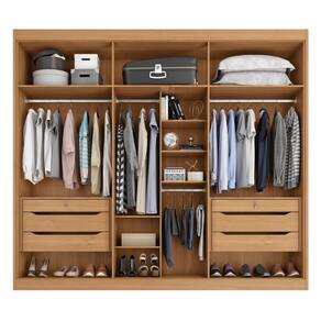 Guarda-Roupa Colossal MDF 6P 6G - Organização e Sofisticação para Seu Quarto! O Guarda-Roupa Colossal MDF 6P 6G é ideal para quem busca otimizar o espaço com estilo e durabilidade. 100% em MDF, ele garante resistência e um acabamento impecável. Com 6 portas e dobradiças metálicas de 35mm com pistão, o fechamento é suave e seguro. As 6 gavetas possuem corrediças telescópicas e a 1ª de cada lado vem com colmeia e chave, enquanto as demais têm frentes usinadas. O guarda-roupa conta ainda com 6 prateleiras, calceiro, cabideiros e suportes metálicos, oferecendo organização máxima para suas roupas e acessórios. As molduras laterais de 25mm e o acabamento interno igual ao externo completam o design sofisticado e funcional, perfeito para qualquer ambiente Acabamento da Prateleira: Pintura Texturizada UV Escala de Brilho da Prateleira: Fosco Acabamento da Gaveta: Pintura Texturizada UV Escala de Brilho da Gaveta: Fosco Possui Organizador de Gaveta: Sim Acabamento da Porta: Pintura Texturizada UV Escala de Brilho da Porta: Fosco Material do Puxador da Porta: MDF Ambiente Principal: Quarto codigo_ean: 7900288202789 Complexidade da Montagem: Alta: deve ser montado por um montador especializado Cor: Cinamomo / Areia Cor do Produto: Cinamomo / Areia Cor do Puxador: Marrom Cor Interna: Cinamomo Escala de Brilho: Fosco Espessura da Estrutura (mm): 12 mm Espessura das Portas (mm): 15 mm Espessura das Prateleiras (mm): 12 mm Espessura do Fundo (mm): 3 mm Espessura do Fundo das Gavetas (mm): 3 mm Gaveta com Chave: Sim Guarda-Roupa Suporta Até (kg): 73 kg Informações Complementares: Fabricado com painéis de madeira reflorestada e certificada. Roupeiro 100% MDF Itens Inclusos: 1 Guarda-Roupa, Kit Ferragens e Manual de Montagem Linha ou Coleção: Colossal Manual de Montagem e Instalação: https://product-hub-prd.madeiramadeira.com.br/118211908/documents/a46d5d65-bd46-4a50-ba56-d2e87285a8273095135573817533762310362.pdf Marca: Zanzini Material da Gaveta: MDF Material da Porta: MDF Material da Prateleira: MDF Material Principal: MDF modular: Não Montagem Flex: Não Necessita Montagem: Sim Nicho com Cabideiro: Não Origem do Produto: Nacional Peso: 268,5 kg Peso Máximo por Gaveta: 3 kg Peso Máximo por Prateleira: 5 kg Porta Janelada: Não Possui Calceiros: 01 Possui Capelinha: Não Possui Espaço para Vestidos Longos: Não Possui Espelho: Não Possui Espelho Interno: Não Possui Ganchos: Não Possui iluminação: Não Possui Nichos: Não Possui Painel de TV: Não Possui Penteadeira: Não Possui Pés: Não Possui Portas: Sim Possui Prateleiras: Sim Possui Sapateira: Não Produto Montado: Sim Quantidade de Cabideiros: 03 Cabideiros Quantidade de Gavetas: 06 Gavetas Quantidade de Prateleiras: 06 Prateleiras Recomendações de Uso, Manutenção e Limpeza: Limpar com flanela ou pano macio seco, não utilizar produtos abrasivos, desengordurantes, álcool ou qualquer outro produto químico. Não expor o produto diretamente à luz solar e à umidade Sistema de Montagem: Parafusos auto atarraxantes, cola, cavilhas, pregos, minifix Tipo de Corrediça da Gaveta: Metálica Telescópica Tipo de Dobradiça/Corrediça da Porta: Metálica Tipo de Gaveta: Interna Tipo de Guarda-Roupa: Casal Tipo de Puxador da Gaveta: Não Possui Tipo de Puxador da Porta: Externo