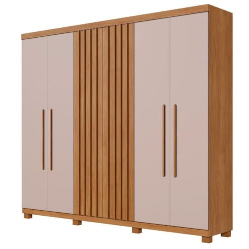 Materiais e Estrutura: Produzido em 100 MDP de 15 mm, garantindo maior vida util 6 portas 7 prateleiras para organizacao 4 gavetas espacosas com corredicas telescopicas Cabideiro em aluminio Portas ripadas Pes inclusos