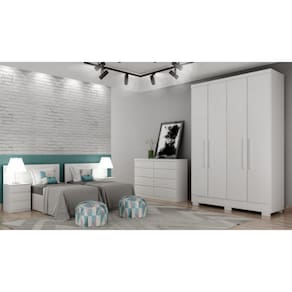 Guarda Roupa Solteiro 4 Portas e 2 Gavetas c/ Pés Milly/Veneza Branco - Novo Horizonte
