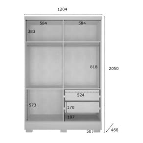 Dimensões(Cm): Comprimento(Profundidade): 46,5cm x Largura: 120,4cm x Altura: 205cm