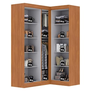 Esta modulação conta com um Canto Paris 2 portas e um Paris 2 portas, ambos com amplo espaço interno, muito bem distribuído com prateleiras para melhor aproveitamento, cabideiros em madeira e uma estrutura versátil que acomoda roupas longas.