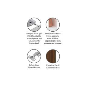 O Guarda Roupa Modulado Prime foi desenvolvido se adequando a vários espaços, de grandes a pequenos. Possui 236 cm de altura oferece divisórias para atender diversas necessidades, profundidade de 56cm possibilitando acomodar roupas sem amassar. Produzido em MDP de 15mm, dobradiças Slowmotin reforçadas em 35mm, a montagem é inteira por minifix que proporciona um acabamento impecável e fundos embutidos com perfil usinado para melhor acabamento e maior resistência.