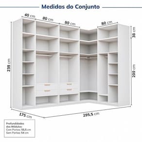 Informação Complementar: 1x Guarda-roupa Modular 40cm 1 Porta com Prateleiras Jade Cabecasa Madeiramadeira Branco