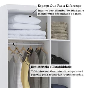 Caracteristicas: Estrutura: 100 MDP Acabamento: PF Quantidade de Portas: 3 Tipo de Dobradicas: Metalica Reforcada Quantidade de Gavetas: 2 Tipo de Corredicas: Telescopica Tipo de Cabideiros: 2 em Aluminio Tipo de Puxador: Aluminio Prata Tipo de Pes: Rodape Sistema de Montagem: Cavilhas, Parafusos e Minifix Itens Inclusos: 1 Guarda Roupa, Kit ferragens e Manual de Montagem. Garantia: 3 meses