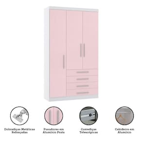 Características: Estrutura: 100 MDP Acabamento: PF Quantidade de Portas: 3 Tipo de Dobradiças: Metálica Reforçada Quantidade de Gavetas: 4 Tipo de Corrediças: Telescópica Tipo de Cabideiros: 1 em Alumínio Tipo de Puxador: Alumínio Prata Tipo de Pés: Rodapé Sistema de Montagem: Cavilhas, Parafusos e Minifix Itens Inclusos: 1 Guarda Roupa, Kit ferragens e Manual de Montagem. Garantia: 3 meses