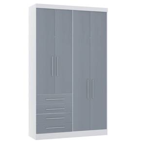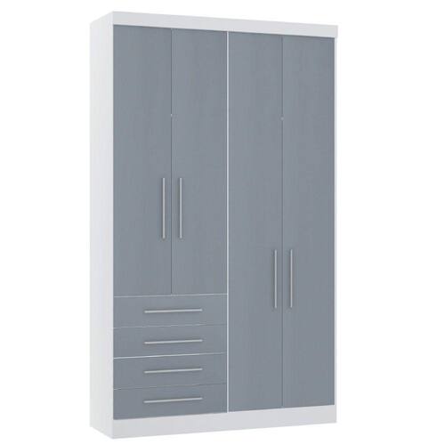 Características: Estrutura: 100 MDP Acabamento: PF Quantidade de Portas: 4 Tipo de Dobradiças: Metálica Reforçada Quantidade de Gavetas: 4 Tipo de Corrediças: Telescópica Tipo de Cabideiros: 2 em Alumínio Tipo de Puxador: Alumínio Prata Tipo de Pés: Rodapé Sistema de Montagem: Cavilhas, Parafusos e Minifix Itens Inclusos: 1 Guarda Roupa, Kit ferragens e Manual de Montagem. Garantia: 3 meses