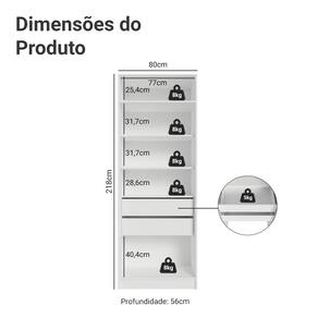 Composto por duas portas, duas gavetas e quatro prateleiras internas, oferece espaço amplo e bem distribuído para organizar roupas, calçados e acessórios com praticidade.