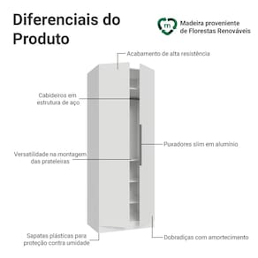 Os diferenciais da linha Neo garantem conforto e durabilidade no dia a dia: ferragens de alta qualidade, como dobradiças com amortecimento que garantem um fechamento suave e silencioso, cabideiros metálicos e puxadores slim em alumínio que completam o design sofisticado. O acabamento branco de alta resistência facilita a combinação com diferentes estilos de decoração.