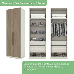 Diferenciais: Dobradiças metálicas, corrediças telescópicas, puxadores, cabideiro e calceiro de alumínio, produto FLEX com dupla opção de montagem na interna (do guarda roupa de 2 portas), opção de montagem (Direita/ Esquerda).