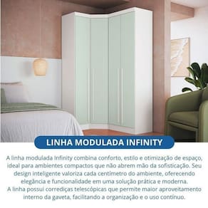 1x Módulo Canto Oblíquo 1 Porta Infinity Branco Line/ Pistache Line Largura: 68,1 cm Altura: 217 cm Peso: 54,6 kg Profundidade: 68,1 cm Necessita Montagem: Sim