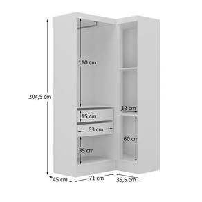 Conheça o Guarda-Roupa Modulado Viena 3 Portas 2 Gavetas Espresso Móveis Nogal/Branco, a solução ideal para otimizar espaços. Com sua estrutura em MDP de alta qualidade, proporciona organização inteligente aliada a um design sofisticado. Transforme seu ambiente com este móvel versátil, garantindo funcionalidade e elegância. Aproveite a garantia de 3 meses e o acabamento fosco para um dormitório que reflete seu estilo único." Altura do Conjunto: 204.5 cm Ambiente Principal: Quarto codigo_ean: 7900288263100 Cor: Branco Cor do Produto: Branco Informação Complementar: 1x Módulo de Canto Reto 1 Porta 204,5cm X 85cm Viena Branco Largura: 85 cm Altura: 204,5 cm Peso: 54,5 kg Profundidade: 45 cm Necessita Montagem: Sim