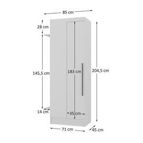 1x Módulo Roupeiro 2 Portas 2 Gavetas Internas Viena Branco Largura: 71 cm Altura: 204,5 cm Peso: 54,5 kg Profundidade: 49 cm Necessita Montagem: Sim