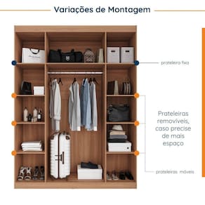 O Guarda Roupa Modular de 4 portas Hera CabeCasa foi desenvolvido para trazer a experiência de ter seu móvel customizado de acordo com a necessidade do seu espaço. O móvel conta com maleiro, 08 prateleiras e um cabideiro que pode ser ajustado conforme a pré marcação na caixaria, evitando assim problemas para nivelamento dos mesmos. Com essa proposta, CabeCasa oferece para seus clientes a possibilidade prática e custo-benefício em oferecer uma linha de modulados que faça a função de um móvel planejado. O cliente pode escolher entre os módulos disponíveis, em diferentes variações de acabamentos, os que mais se adaptam ao seu gosto e ao seu dia a dia. Além disso, conta com design moderno que irá trazer muito mais sofisticação e aconchego para a decoração. Acabamento da Porta: Finish Foil Acabamento da Prateleira: Finish Foil Acabamento dos Pés: Finish Foil Altura dos Pés: 8 cm Ambiente Principal: Quarto Complexidade da Montagem: Alta: deve ser montado por um montador especializado Composição: MDP Cor: Louro/Cromado Cor do Produto: Louro/Cromado Cor Interna: Marrom Escala de Brilho: Semi-Fosco Espessura do Material da Estrutura: 15 mm Informações Complementares: Puxador Metálico Acetinado, portas em chapa de 18mm com dobradiças com amortecimento, fundos em 6mm, cabideiro em aço cromado suportando até 10kg e Maleiro até 25kg. Itens Inclusos: Guarda Roupas Hera 4 portas, Manual de Montagem e Kit de Ferragens Linha ou Coleção: Hera Manual de Montagem e Instalação: https://cdn2.madeiramadeira.com.br/atributo/herval-edez-rs/1516744-ph4019-manualhera4pfinalizado.pdf Material da Porta: MDP Material da Prateleira: MDP Material dos Pés: MDP Material Principal: MDP Montagem Flex: Não Necessita Montagem: Sim O Módulo Pode ser utilizado individualmente: Sim Origem do Produto: Nacional Pés Reguláveis: Não Peso: 164 kg Peso Máximo por Prateleira: 10 kg Possui Espelho: Não Possui Pés: Rodapé Possui Portas: 04 Possui Prateleiras: 06 Possui Rodízio: Não Recomendações de Uso, Manutenção e Limpeza: Deve ser realizada com pano limpo e seco. Sapatas Niveladoras: Sim Sistema de Montagem: Cavilhas, parafusos e minifix Tipo de Dobradiça/Corrediça da Porta: Metálica Tipo de Guarda-Roupa: Solteiro Tipo de Módulo: Guarda-Roupa Tipo de Puxador da Porta: Externo Ean: 7909903421277