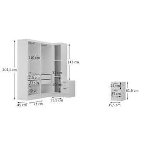 1x Módulo de Canto Reto 1 Porta 204,5cm X 85cm Viena Branco