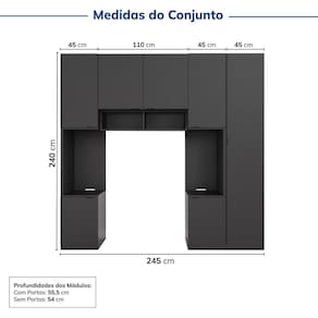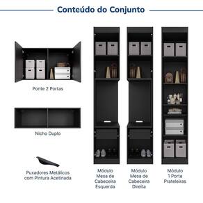 Guarda-roupa Modulado 7 Portas 5 Peças Hera Cabecasa Madeiramadeira Preto. O Guarda Roupa Modulado 7 Portas 5 peças Cabeceira Hera CabeCasa foi desenvolvido para trazer a experiência de ter seu móvel customizado de acordo com a necessidade do seu espaço. O conjunto conta com Dois modulos de Mesa de Cabeceira, uma ponte 2 portas, um Nicho Duplo e um Guarda Roupa 1 Porta. Com essa proposta, CabeCasa oferece para seus clientes a possibilidade prática e custo-benefício em oferecer uma linha de modulados que faça a função de um móvel planejado. O cliente pode escolher entre os módulos disponíveis, em diferentes variações de acabamentos, os que mais se adaptam ao seu gosto e ao seu dia a dia. Além disso, conta com design moderno que irá trazer muito mais sofisticação e aconchego para a decoração.!