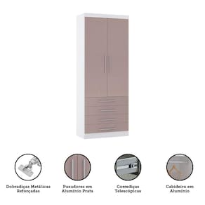 Características: Estrutura: 100 MDP Acabamento: PF Quantidade de Portas: 2 Tipo de Dobradiças: Metálica Reforçada Quantidade de Gavetas: 4 Tipo de Corrediças: Telescópica Tipo de Cabideiros: 1 em Alumínio Tipo de Puxador: Alumínio Prata Tipo de Pés: Rodapé Sistema de Montagem: Cavilhas, Parafusos e Minifix Itens Inclusos: 1 Guarda Roupa, Kit ferragens e Manual de Montagem. Garantia: 3 meses