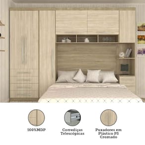 Ambiente composto por: 1 Mesa de Cabeceira Alto Modulado 2 Portas 1 Gaveta Direito ou Esquerdo Luciane Moveis 230 x 38 x 41,5 (Altura x Largura x Profundidade - cm) 1 Guarda Roupa Modulado 1 Porta 4 Prateleiras 38cm Master Luciane Moveis 230 x 38 x 46,5 (Altura x Largura x Profundidade - cm) 1 Guarda Roupa Modulado 2 Portas 4 Gavetas Master Luciane Moveis 230 x 79 x 46,5 (Altura x Largura x Profundidade - cm) 1 Ponte Modulada Aerea Casal 2 Portas com Nicho 147cm Master Luciane Moveis 82 x 147 x 41,5 (Altura x Largura x Profundidade - cm) 1 Painel Cabeceira Casal 146cm Master Luciane Moveis 90 x 146 x 1,5 (Altura x Largura x Profundidade - cm)