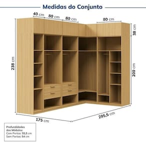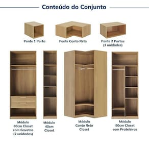 1x Guarda-roupa de Canto Reto Modular 95cm sem Portas com Cabideiros Jade Cabecasa Madeiramadeira Avelã Largura: 95 cm Altura: 200 cm Peso: 71,92 kg Profundidade: 95 cm Necessita Montagem: Sim
