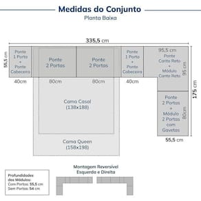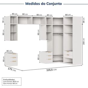 Informação Complementar: 1x Guarda-roupa Modular 80cm sem Portas com Gaveteiro Jade Cabecasa Madeiramadeira Branco