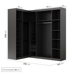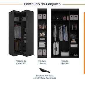 O Guarda Roupa Modulado de Canto 6 portas 3 peças com 03 portas Reflecta Hera Cabecasa foi desenvolvido para trazer a experiência de ter seu móvel customizado de acordo com a necessidade do seu espaço. O conjunto conta com módulo de uma porta, canto reto e módulo 3 portas Reflecta. Com essa proposta, CabeCasa oferece para seus clientes a possibilidade prática e custo-benefício em oferecer uma linha de modulados que faça a função de um móvel planejado. O cliente pode escolher entre os módulos disponíveis, em diferentes variações de acabamentos, os que mais se adaptam ao seu gosto e ao seu dia a dia. Além disso, conta com design moderno que irá trazer muito mais sofisticação e aconchego para a decoração. Acabamento da Prateleira: Pintura UV Escala de Brilho da Prateleira: Semi-Fosco Possui Cabideiros: 03 Acabamento da Gaveta: Pintura UV Escala de Brilho da Gaveta: Semi-Fosco Possui Organizador de Gaveta: Não Acabamento da Porta: Pintura UV Escala de Brilho da Porta: Semi-Fosco Material do Puxador da Porta: Metal Altura dos Pés: 8 cm Altura Máxima dos Pés: 8.0000 Ambiente Principal: Quarto codigo_ean: 7909903487006 Complexidade da Montagem: Alta: deve ser montado por um montador especializado Cor: Preto Cor do Produto: Preto Cor Interna: Preto Escala de Brilho: Semi-Fosco Gaveta com Chave: Não Itens Inclusos: 1 Guarda Roupas 1 Porta, 1 Guarda Roupa de Canto Reto, 1 Guarda Roupa 3 Portas Reflecta, Manual de Montagem e Kit Ferragens Linha ou Coleção: Hera Manual de Montagem e Instalação: https://product-hub-prd.madeiramadeira.com.br/880173/documents/9ea949b1-49e5-4e8d-abdd-56b885f1abc47548manualheracjto50167358.pdf Material da Gaveta: MDP Material da Porta: MDF/MDP Material da Prateleira: MDP Material dos Pés: MDP Material Principal: MDP Medida de Cada Item: Canto: 240cm x 99,6cm x 101cm Guarda-Roupas 1 porta: 240cm x 45cm x 54cm Guarda-Roupa 3 portas: 240cm x 135cm x 56cm modular: Sim Montagem Flex: Os módulos são individuais, podem ser montados como sugestão da foto ou da forma que melhor couber no seu espaço. Necessita Montagem: Sim O Módulo Pode ser utilizado individualmente: Sim Origem do Produto: Nacional Peso: 378,9 kg Peso Máximo por Gaveta: 3 kg Peso Máximo por Prateleira: 10 kg Possui Calceiros: Não Possui Espelho: Não Possui Pés: Rodapé Possui Portas: Sim Possui Prateleiras: Sim Produto Montado: Sim Quantidade de Gavetas: 02 Gavetas Quantidade de Prateleiras: 12 Prateleiras Recomendações de Uso, Manutenção e Limpeza: Limpar com pano seco e limpo Sapatas Niveladoras: Não Sistema de Montagem: Parafusos, cavilhas e minifix. Tipo de Corrediça da Gaveta: Metálica Telescópica Tipo de Dobradiça/Corrediça da Porta: Metálica Tipo de Gaveta: Interna Tipo de Guarda-Roupa: Modulado Casal Tipo de Puxador da Gaveta: Embutido Tipo de Puxador da Porta: Externo Ean: 7909903487006