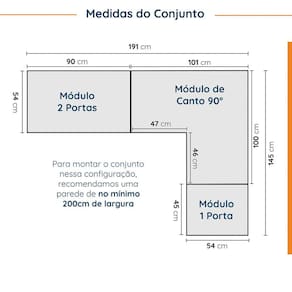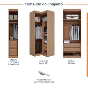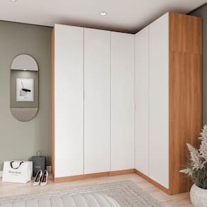O Guarda Roupa Modulado de Canto 5 portas 8 gavetas 3 peças Hera CabeCasa foi desenvolvido para trazer a experiência de ter seu móvel customizado de acordo com a necessidade do seu espaço. O conjunto conta com módulo de uma e duas portas e canto reto. Com essa proposta, CabeCasa oferece para seus clientes a possibilidade prática e custo-benefício em oferecer uma linha de modulados que faça a função de um móvel planejado. O cliente pode escolher entre os módulos disponíveis, em diferentes variações de acabamentos, os que mais se adaptam ao seu gosto e ao seu dia a dia. Além disso, conta com design moderno que irá trazer muito mais sofisticação e aconchego para a decoração. Acabamento da Prateleira: Pintura UV Escala de Brilho da Prateleira: Semi-Fosco Possui Cabideiros: 04 Acabamento da Gaveta: Pintura UV Escala de Brilho da Gaveta: Semi-Fosco Material do Puxador da Gaveta: Metal Possui Organizador de Gaveta: Não Acabamento da Porta: Finish Foil Escala de Brilho da Porta: Semi-Fosco Material do Puxador da Porta: Metal Acabamento dos Pés: Pintura Altura dos Pés: 8 Ambiente Principal: Quarto Complexidade da Montagem: Alta: deve ser montado por um montador especializado Cor: Branco Geada/Louro Cor do Produto: Branco Geada/Louro Cor Flex: Não Cor Interna: Branco Escala de Brilho: Semi-Fosco Gaveta com Chave: Não Imagem/foto do produto: Foto do produto Informações Complementares: Puxador Metálico Acetinado portas em chapa de 18mm com dobradiças com amortecimento, gavetas com corrediça telescópica, fundos em 6mm, cabideiros em aço cromado suportando até 10kg e Maleiro até 25kg. Itens Inclusos: 2 Guarda Roupas 2 Portas, 1 Canto Reto, Manual de montagem e Kit ferragens Linha ou Coleção: Hera Manual de Montagem e Instalação: https://cdn2.madeiramadeira.com.br/atributo/herval-edez-rs/1362550-manual-grmoduladodecanto5portas8gavetas3peashera.pdf Material da Gaveta: MDF/MDP Material da Porta: MDP Material da Prateleira: MDP Material dos Pés: MDP Material Principal: MDP Medida de Cada Item: Guarda Roupa 1 Porta: 240x45x554cm; Guarda Roupa 2 Portas: 240x90x54cm; Canto Reto: 240x99,6x101cm Montagem Flex: As prateleiras podem ser removíveis com diferentes opções de altura, os cabideiros podem ser removíveis e possuem opções para serem utilizado como calceiro ou como cabideiro. Já as caixarias com duas gavetas possuem duas posições de altura para instalação Necessita Montagem: Sim Origem do Produto: Nacional Peso: 124.7 Peso Máximo por Gaveta: 3 Peso Máximo por Prateleira: 10 Possui Calceiros: Não Possui Espelho: Não Possui Pés: Rodapé Possui Portas: 05 Possui Prateleiras: 03 Recomendações de Uso, Manutenção e Limpeza: Deve ser realizada com pano limpo e seco. Sapatas Niveladoras: Não Sistema de Montagem: Cavilha, parafuso e minifix Tipo de Corrediça da Gaveta: Metálica Telescópica Tipo de Dobradiça/Corrediça da Porta: Metálica Tipo de Gaveta: Interna Tipo de Guarda-Roupa: Modulado Casal Tipo de Puxador da Gaveta: Externo Tipo de Puxador da Porta: Externo